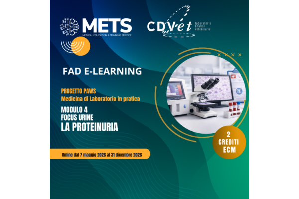 Questo modulo, inserito nel progetto PAWS – Medicina di Laboratorio in pratica, si propone di fornire al medico veterinario strumenti pratici per riconoscere, classificare e interpretare correttamente la proteinuria, valorizzando il ruolo dell’esame delle urine come parte integrante del percorso diagnostico.